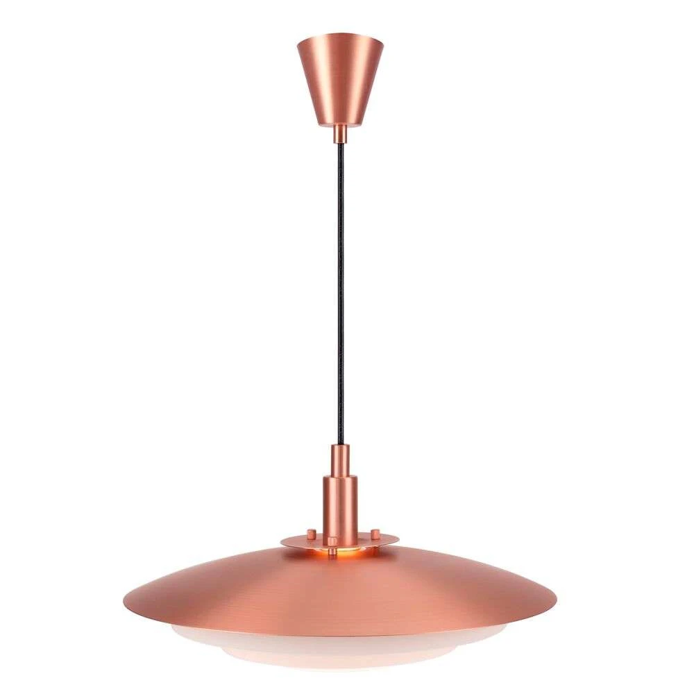 Die Bretagne 38 Pendelleuchte Kupfer ist der Inbegriff skandinavischer Ästhetik dank ihres schlichten visuellen Ausdrucks, ihres einfachen, aber konsequenten Designs und ihrer universell schmeichelhaften neutralen Farbgebung, die sich mit einer Vielzahl von Räumen und Interieurs kombinieren lässt. Die Leuchte gehört zu einer ganzen Serie des dänischen Designers Kaare Bækgaard, dem es gelungen ist, ein modernes, stilbewusstes Leuchtenmodell zu einem vernünftigen Preis zu schaffen. Die Leuchten der Bretagne-Serie sind von der klassischen PH-Lampe inspiriert, aber in einem neuen, aufregenden und leichter zugänglichen Design, das Stil in jedes Wohnzimmer bringt.