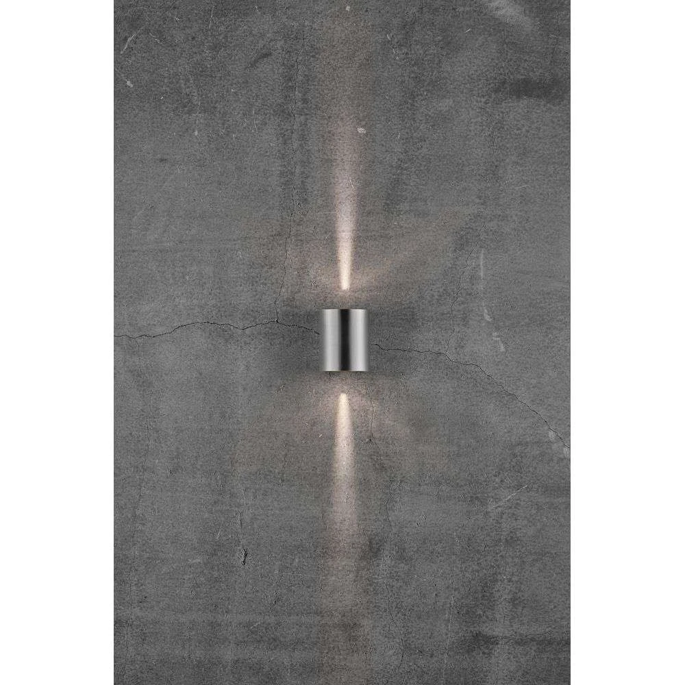 Canto 2 Wall Light Stainless Steel sorgt für ein ganz besonderes Lichterlebnis, egal ob im Innen- oder Außenbereich. Das Erscheinungsbild der Leuchte ist von einer minimalistischen Schlichtheit geprägt, die sich sowohl in der Form als auch in der Farbe widerspiegelt und diesem Modell einen dekorativen und skulpturalen Charakter verleiht.