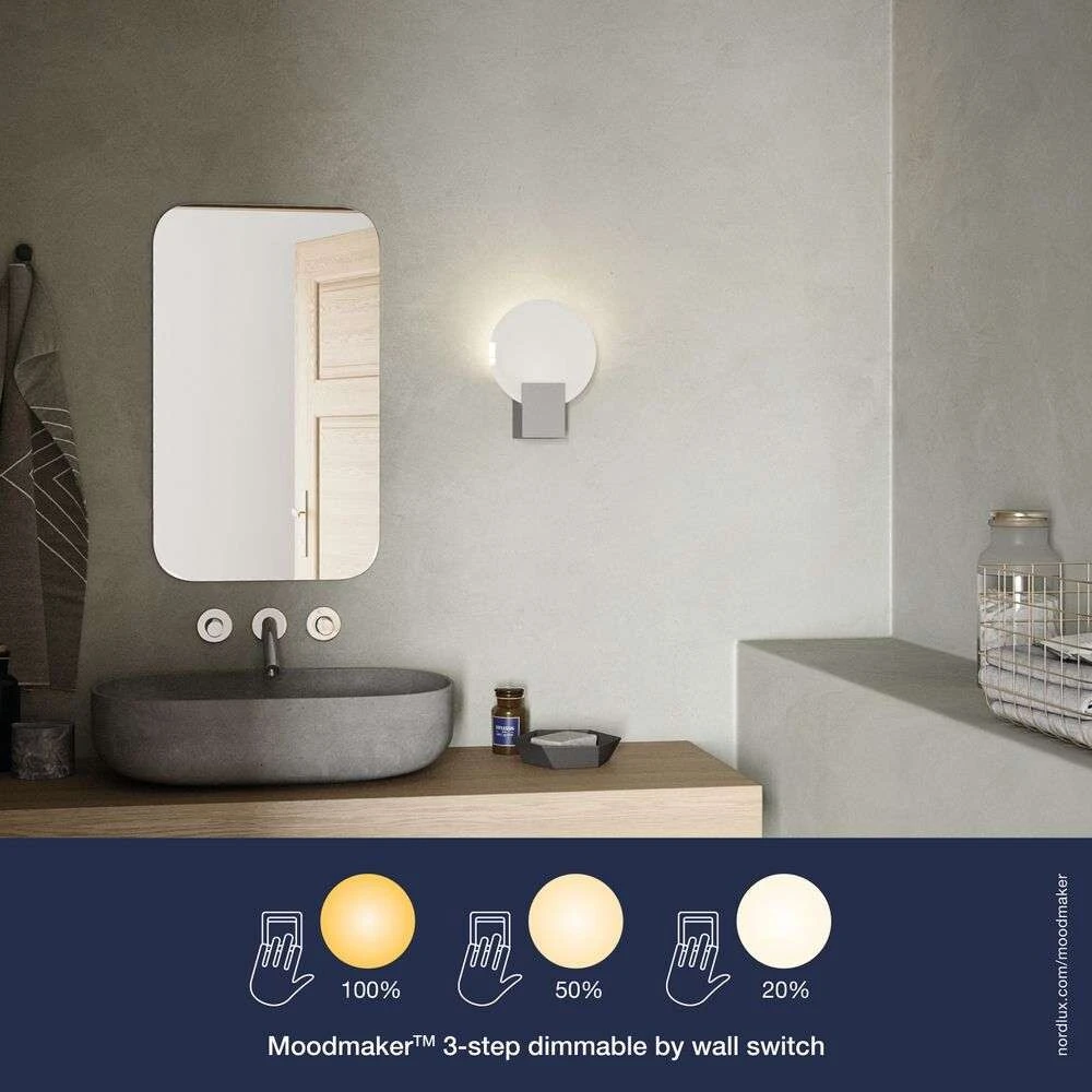 Die Leuchte ist mit einer Moodmaker SceneSelect-Funktion ausgestattet, die es ermöglicht, das Licht am normalen Wandschalter durch wiederholtes Drücken zu dimmen. Der erste Klick ergibt die volle Helligkeit (3000K), während der zweite Klick die halbe Helligkeit ergibt und der dritte Klick ein angenehmes Nachtlicht ergibt, das die Augen schützt.