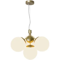 Ivona 4 Pendelleuchte Messing ist eine schöne und moderne Neuinterpretation des klassischen Kronleuchters. Die Lichtquellen der Lampe sind in einem Cluster angeordnet, was sie zusammen mit ihrer schönen runden Form wie Seifenblasen oder einen Strauß Ballons aussehen lässt. Ganz gleich, ob Sie eine stimmungsvolle Beleuchtung für Ihren Flur, Ihr Wohnzimmer oder Ihr Treppenhaus benötigen, Sie können sicher sein, dass die Pendelleuchte Ivona mit ihrem fröhlichen, sprudelnden Ausdruck und ihrem raffinierten Design Ihre Umgebung beleben wird.