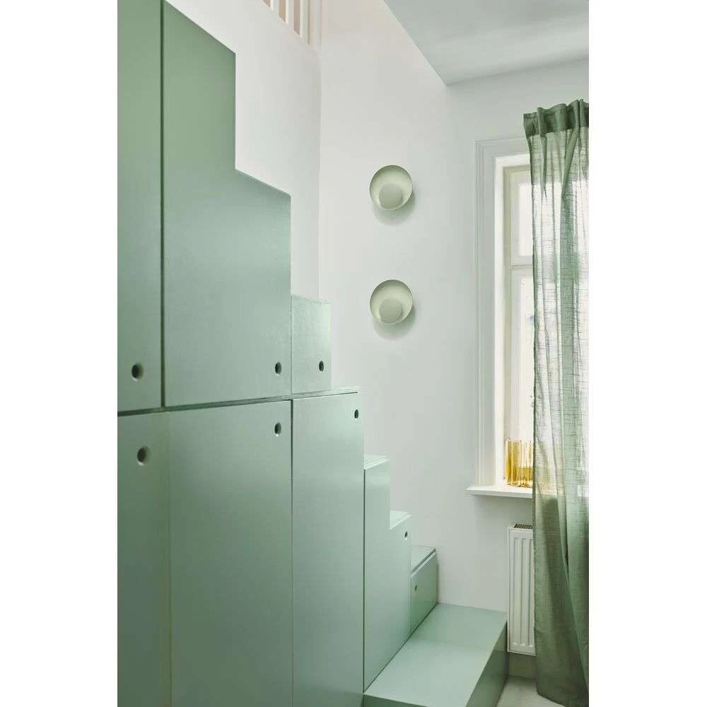 Marsi Wandleuchte Dusty Green hat ein einfaches, aber vollendetes Design, das einen gemütlichen Lichtakzent im Raum setzt. Das Design der Leuchte besteht aus zwei kreisförmigen Schirmen, die einen perfekten und abgerundeten Gesamteindruck mit klaren minimalistischen Untertönen schaffen. Zwischen den Schirmen ist ein LED-Modul als Lichtquelle der Lampe installiert. Schaltet man die Leuchte ein, fällt das Licht auf den breiteren Schirm, von wo aus es sich in einem harmonischen, indirekten Licht auf den Rest des Raumes überträgt. Der kleinere Schirm erzeugt einen markanten Schattenkontrast, der das schöne Design unterstreicht.