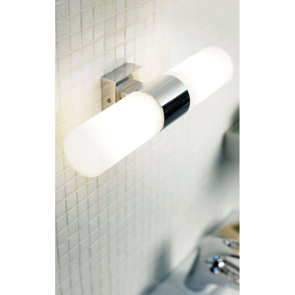 Die Tangens Double Wall Light Chrome hat ein einfaches, modernes und minimalistisches Design, das sie zu einer unglaublich vielseitigen Leuchte macht, die sich leicht in viele Arten von Räumen und Interieurs einfügen lässt. Die Leuchte zeichnet sich durch ihren schlanken, zylindrischen Leuchtenkopf aus opalweißem Glas in Form eines Stabes aus. Der Stab wirkt wie ein Diffusor, der das Licht der dahinter liegenden Lichtquelle abschwächt, so dass es sich gleichmäßig und blendfrei im Raum verteilt. Die Leuchte ist mit einer Standardfassung ausgestattet, in die eine Vielzahl von Leuchtmitteln passt, so dass Sie sie mit einem Leuchtmittel Ihrer Wahl bestücken können.