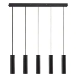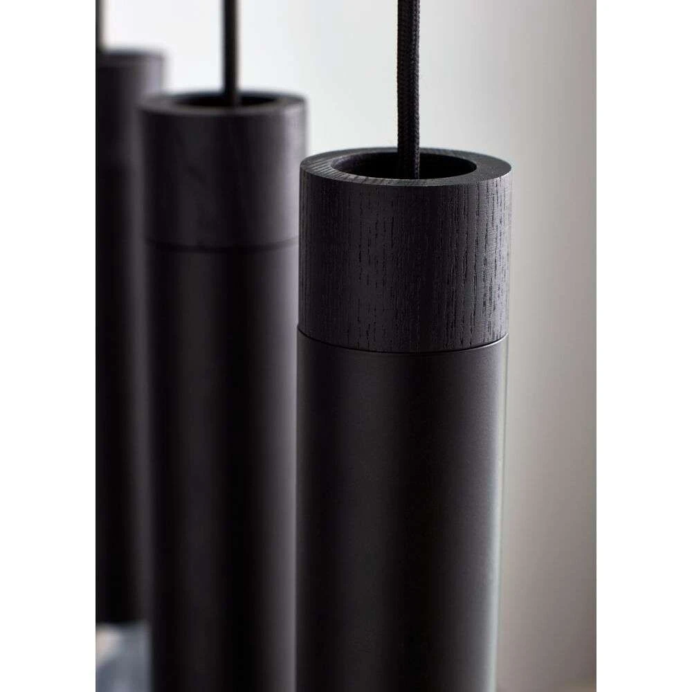 Tilo 5 Pendelleuchte Schwarz strahlt nordische Eleganz und stilvolle Schlichtheit aus. Das schlanke Design, die dunkle, matte Oberfläche und die gelungene Kombination von Materialien machen die Tilo-Serie zum Inbegriff des skandinavischen Minimalismus. Der Kopf der Pendelleuchte besteht aus Metall mit einem abnehmbaren Top aus schwarz lackiertem Eschenholz in genau der gleichen Farbe, um eine schöne Kohärenz im Gesamtdesign zu schaffen. Die stilvolle Strenge eignet sich besonders gut für moderne und minimalistische Innenräume mit einer Vorliebe für einfache, klare Linien.