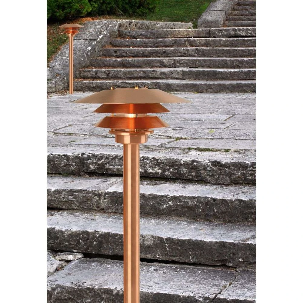 Die Venø Garten Leuchte Copper heißt Gäste mit ihrem ansprechenden Design und der praktischen Beleuchtung auf schöne Weise willkommen. Die Leuchte ist wie ein klassisches Outdoor-Modell geformt: Der Schirm hat das charakteristische, zeitlose Mehrschicht-Design, das die Lichtquelle vor Blendung schützt und das Licht in einem praktischen Downlight nach unten lenkt.