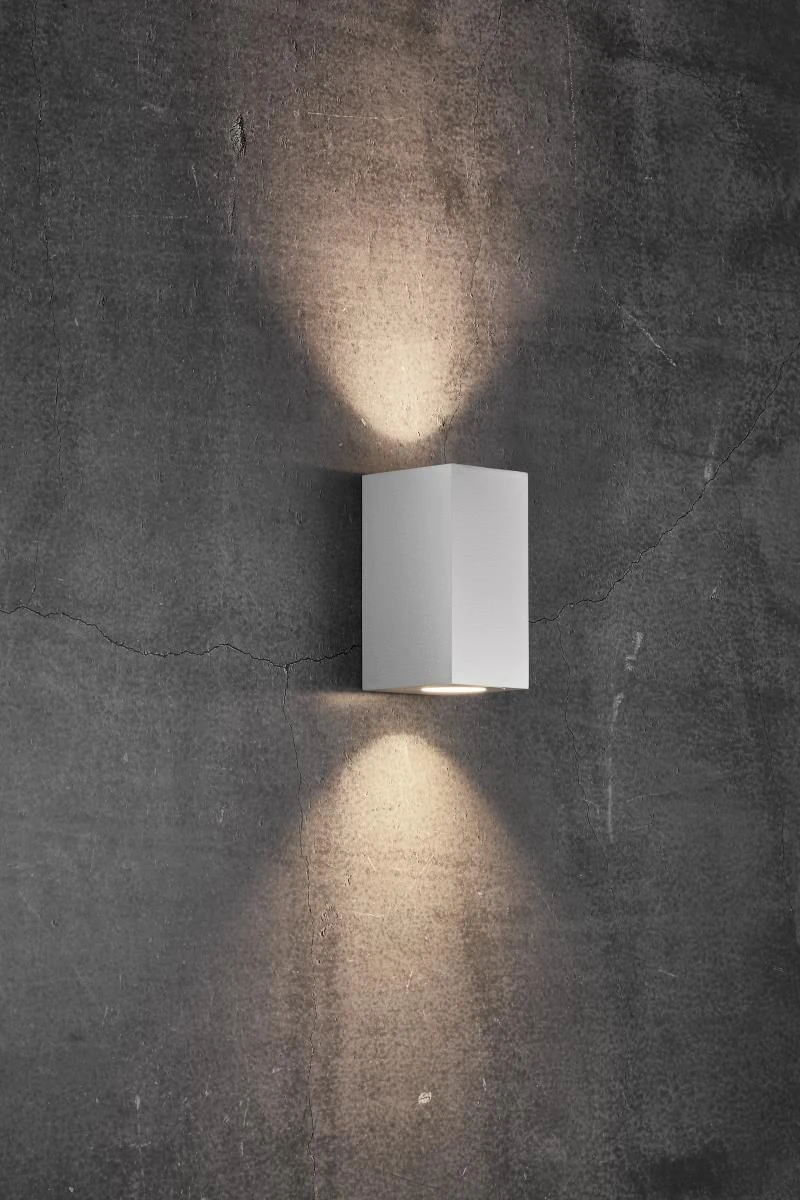 Die 172x87x100mm große Canto Kubi Maxi 2 in weiß ist aufgrund Ihrer kompakten Form bestens geeignet für unterschiedlichste Einsatzmöglichkeiten. Mit der Schutzart von IP44 ist sie perfekt für den Außenbereich geschaffen. Canto Kubi Maxi 2 erlaubt außerdem ein schönes Up- Downlight an Ihrer Hauswand vorausgesetzt Sie bestücken die zwei GU10 Fassungen mit passenden Leuchtmitteln. Da diese dem Lieferumfang der Leuchte nicht beigefügt sind ergibt sich Ihnen die Möglichkeit einer eigenen Komposition was Lichtfarbe und Intensität betrifft.